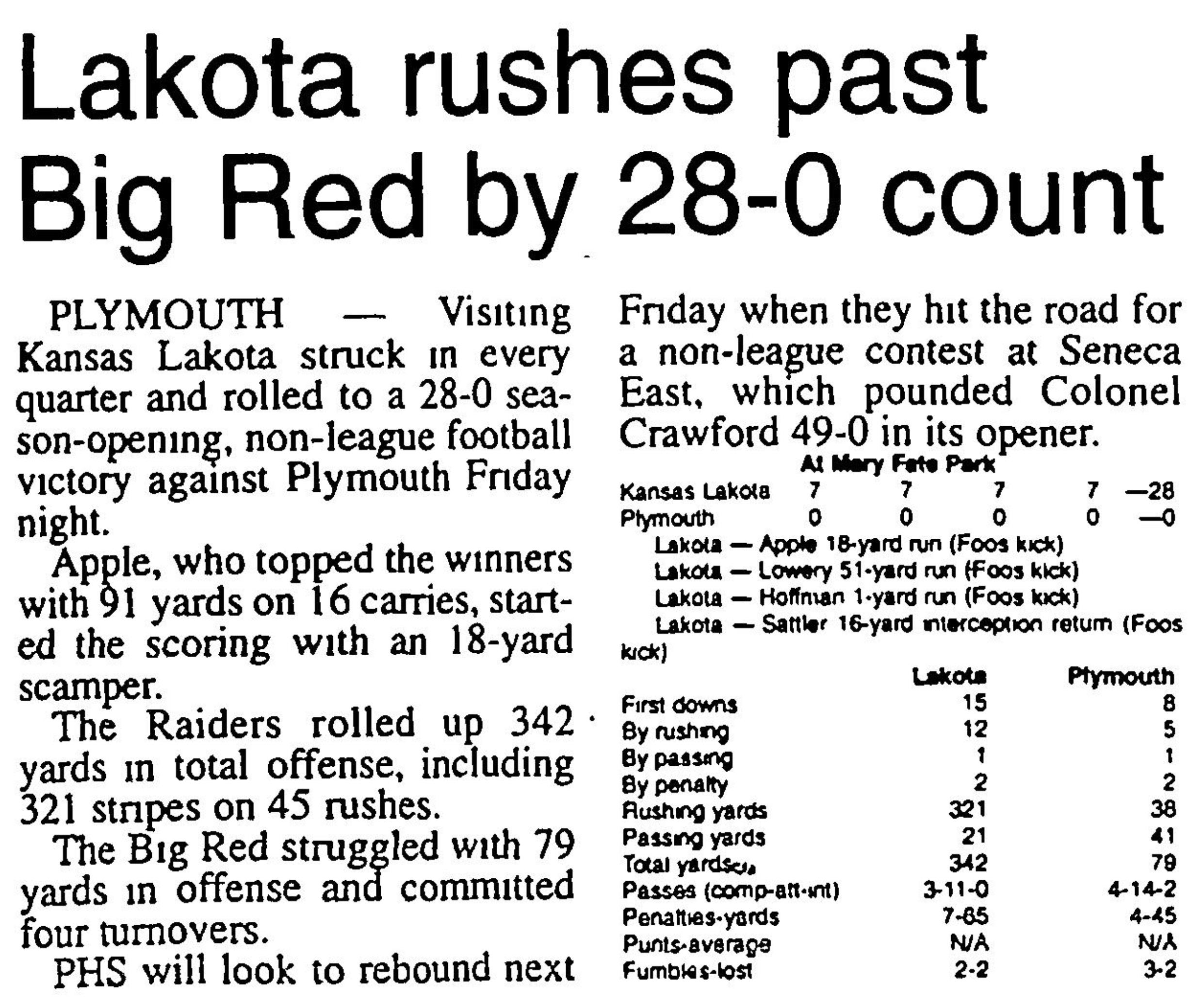 Game 1 - 8/25/2006 - Lakota vs. Plymouth