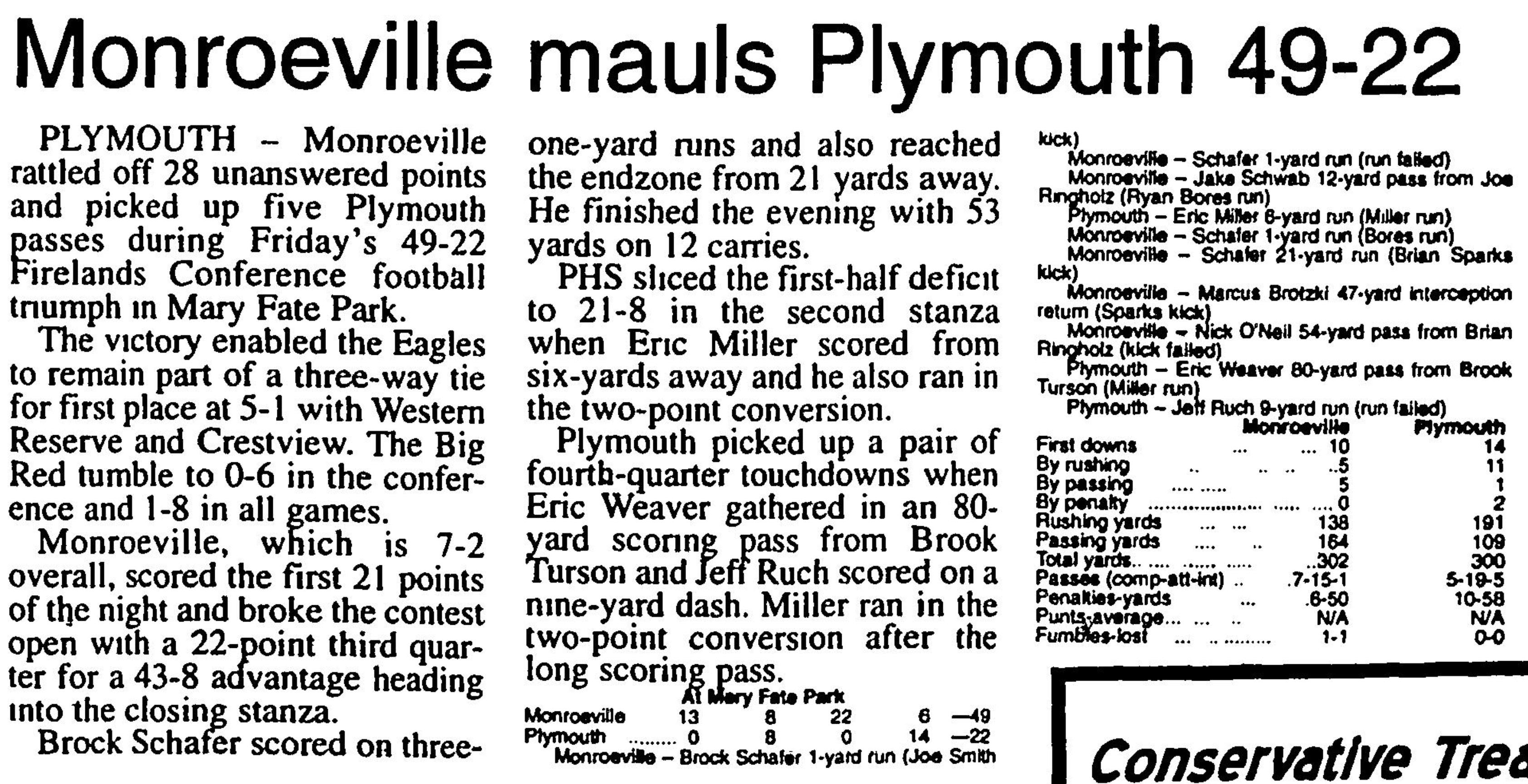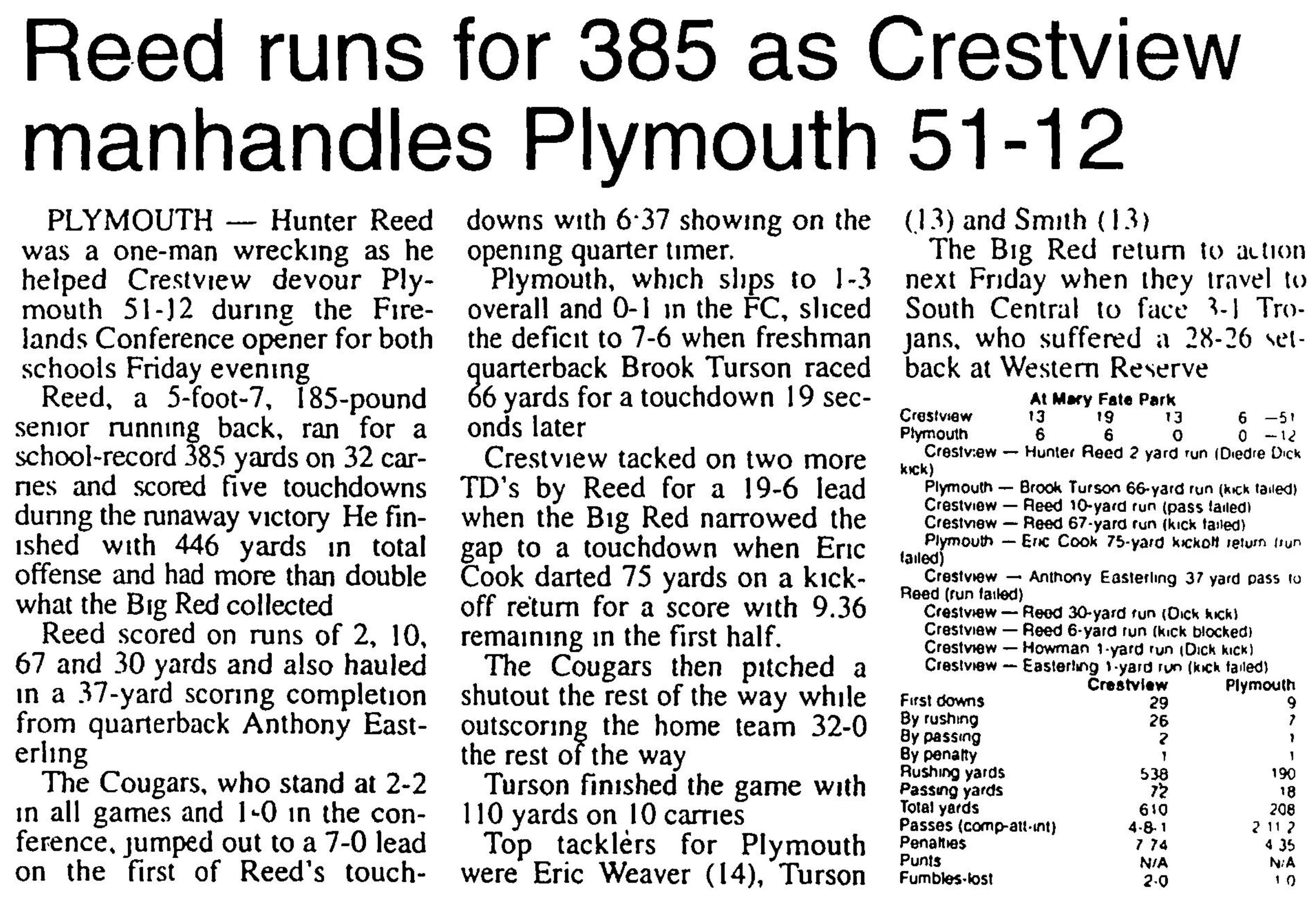 Eric Weaver 3 Receptions 96 Yards 32.0 Avg. 1 TD