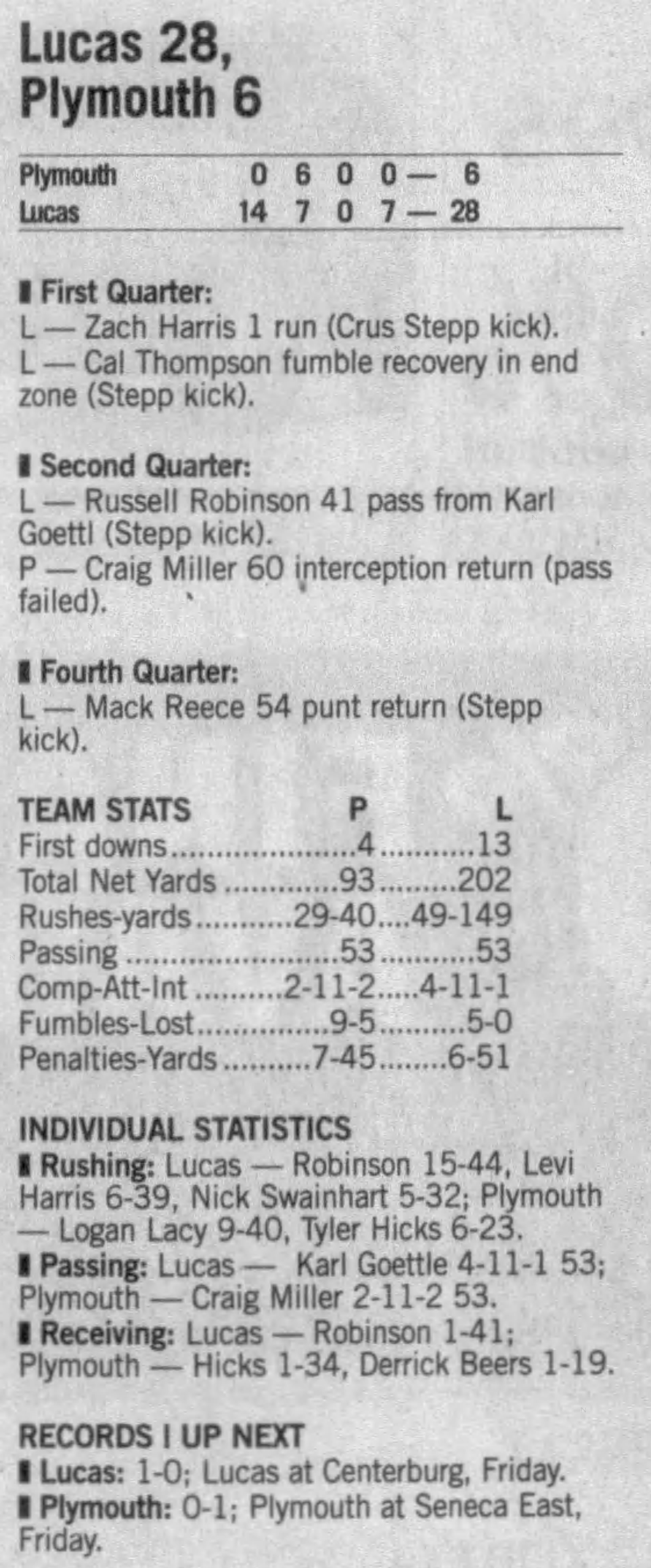 Game 1 - 8/27/2010 - Plymouth vs. Lucas