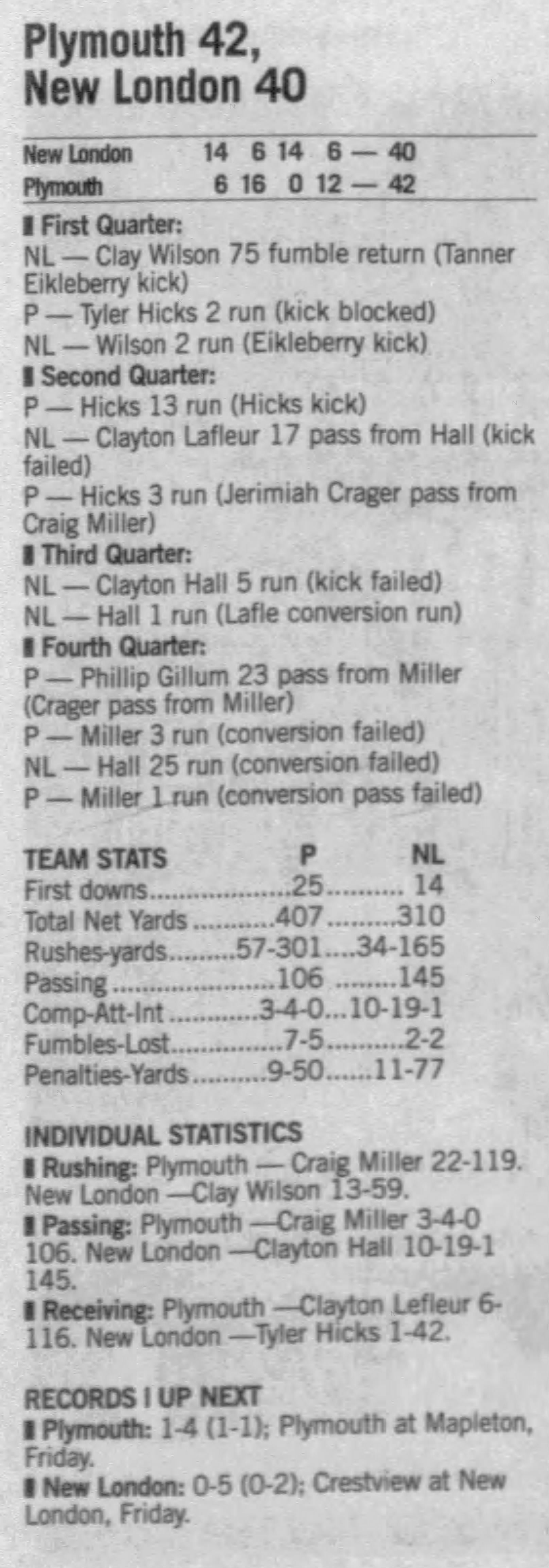 Q2 - Plymouth - Craig Miller 5-Yard Run (Kick Failed)