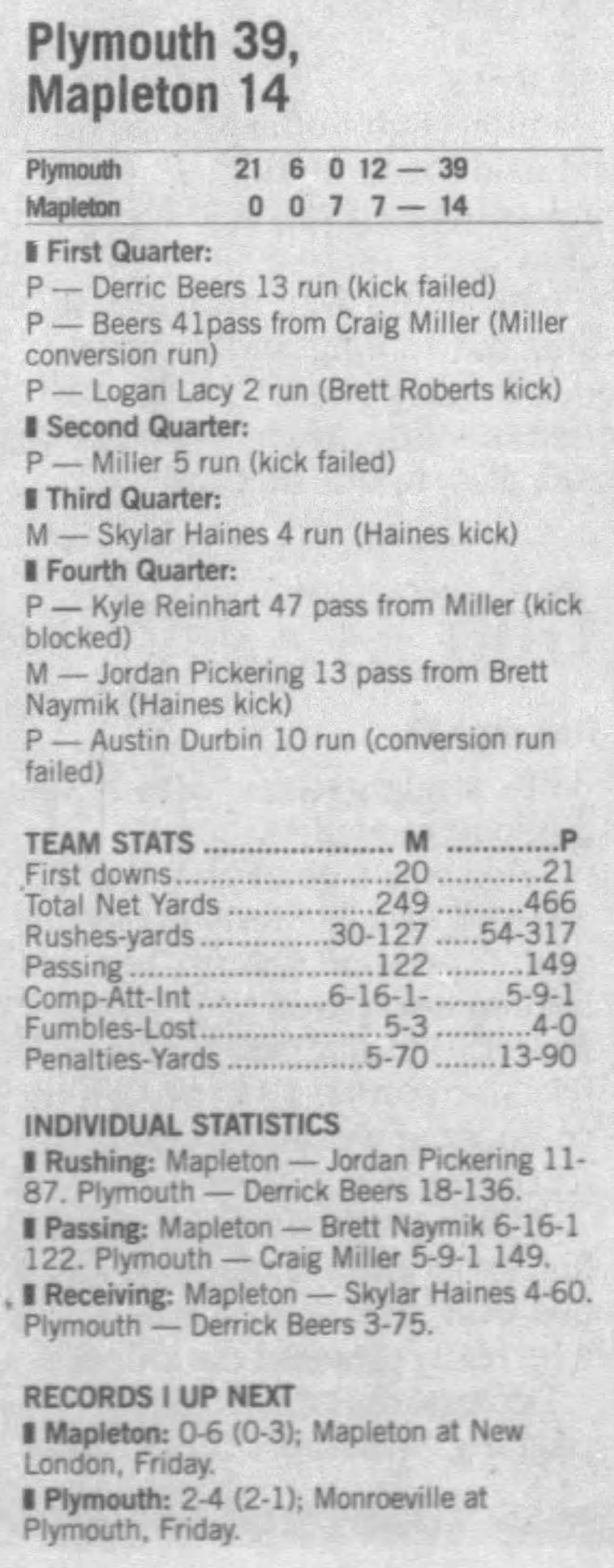 Game 6 - 10/1/2010 - Plymouth vs. Mapleton