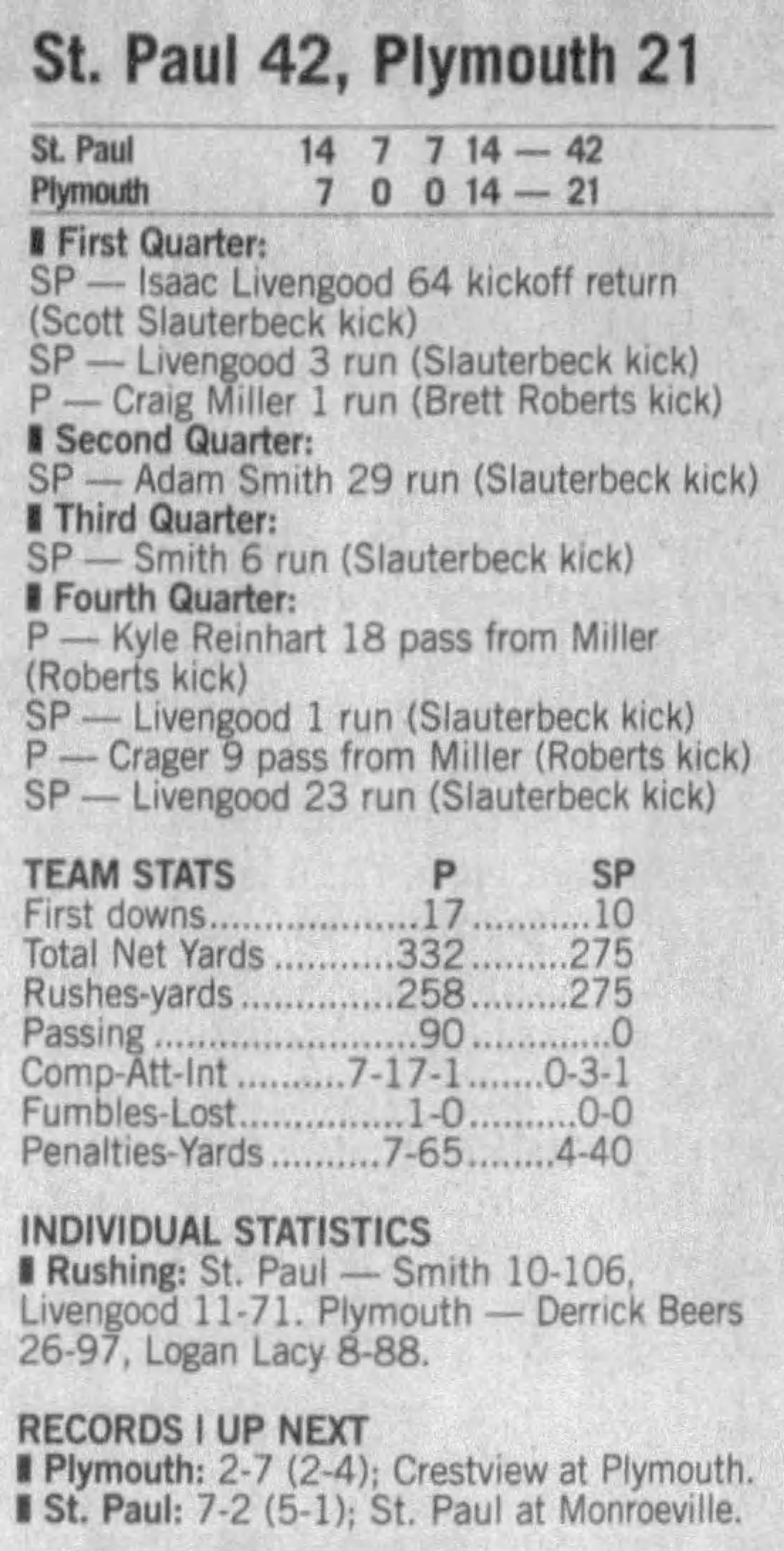 Q4 - St. Paul - Isaac Livengood 1-Yard Run (Scott Slauterbeck Kick)
