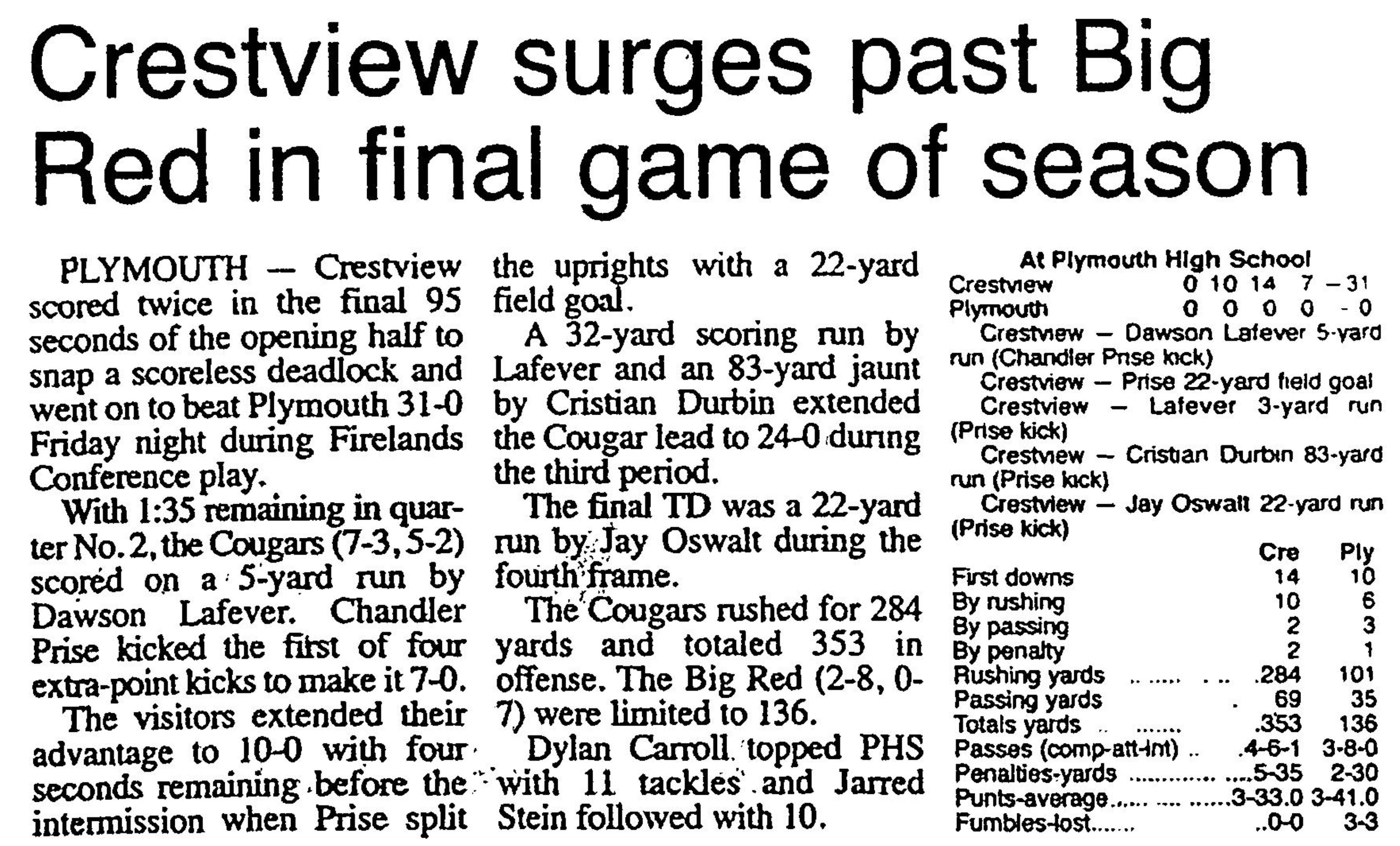 Game 10 - 10/28/2016 - Crestview vs. Plymouth