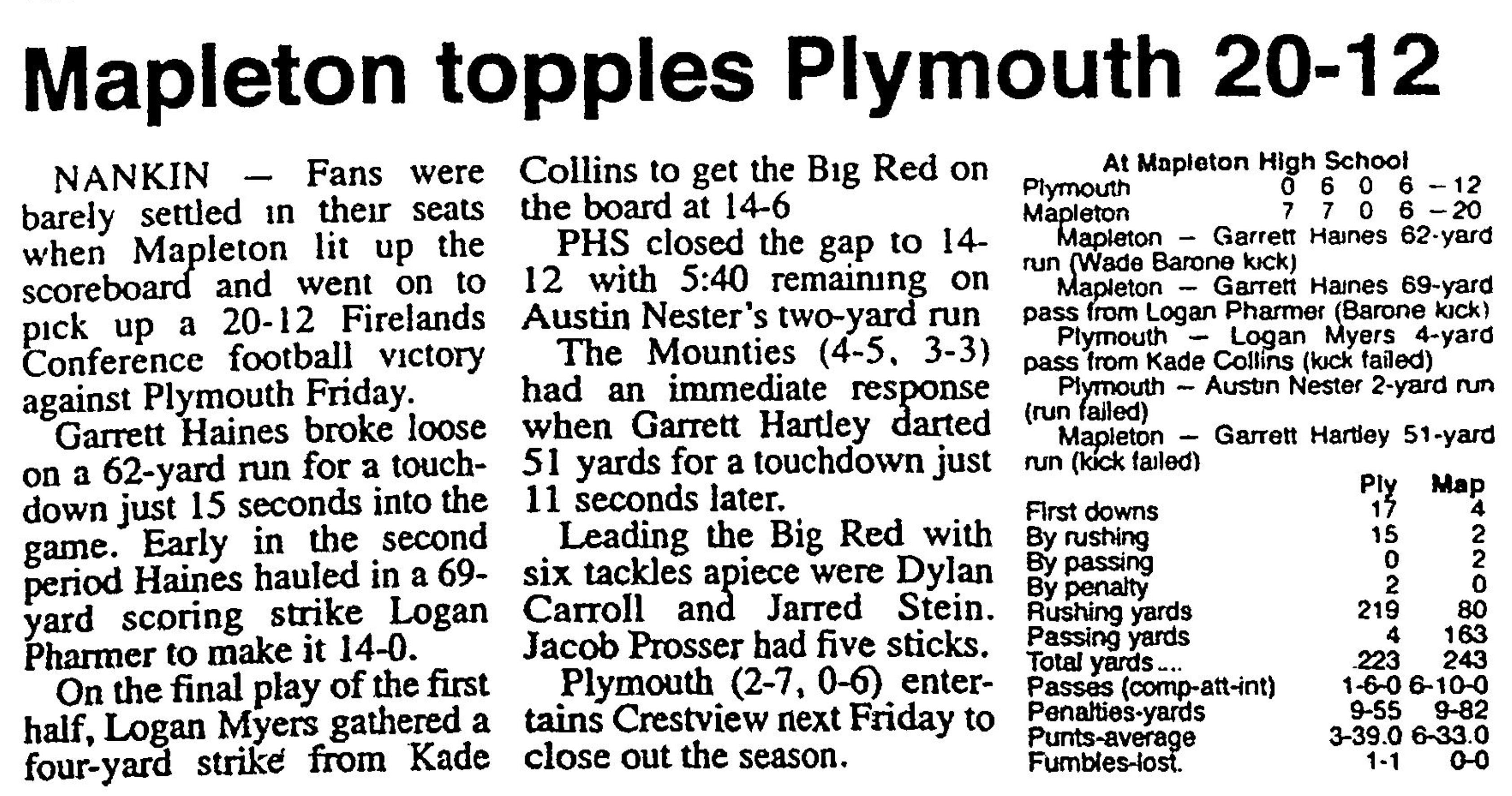 Q2 - Plymouth - Dylan Carroll 4-Yard Run (Austin Roblin Kick)