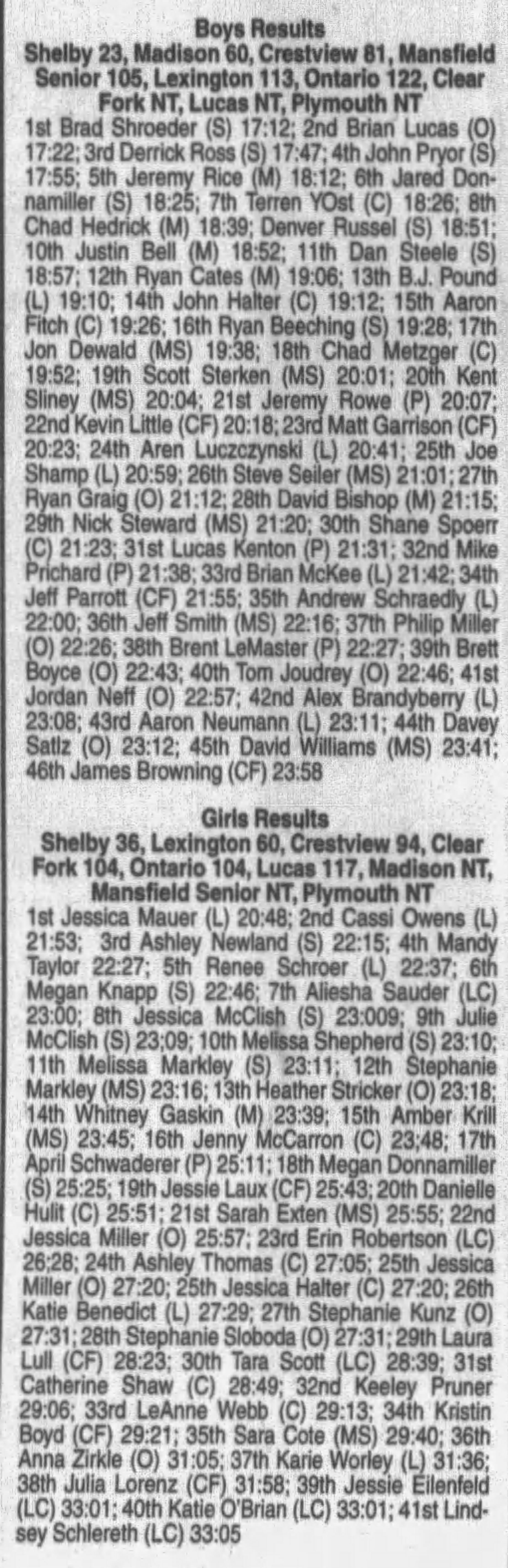 9/26/2000 	Away		Tri at Shelby with Bellevue				HS Boys - 3rd	HS Girls - 3rd