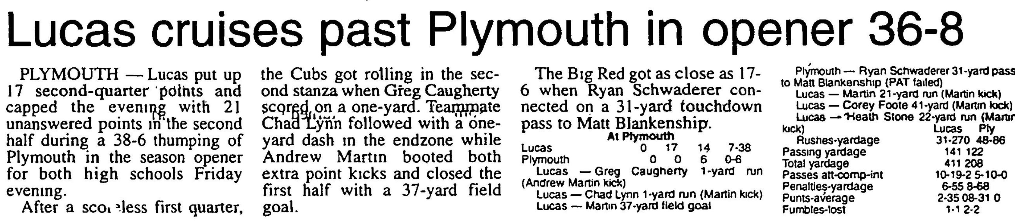 Game 1 - 8/27/1999 - Lucas vs. Plymouth