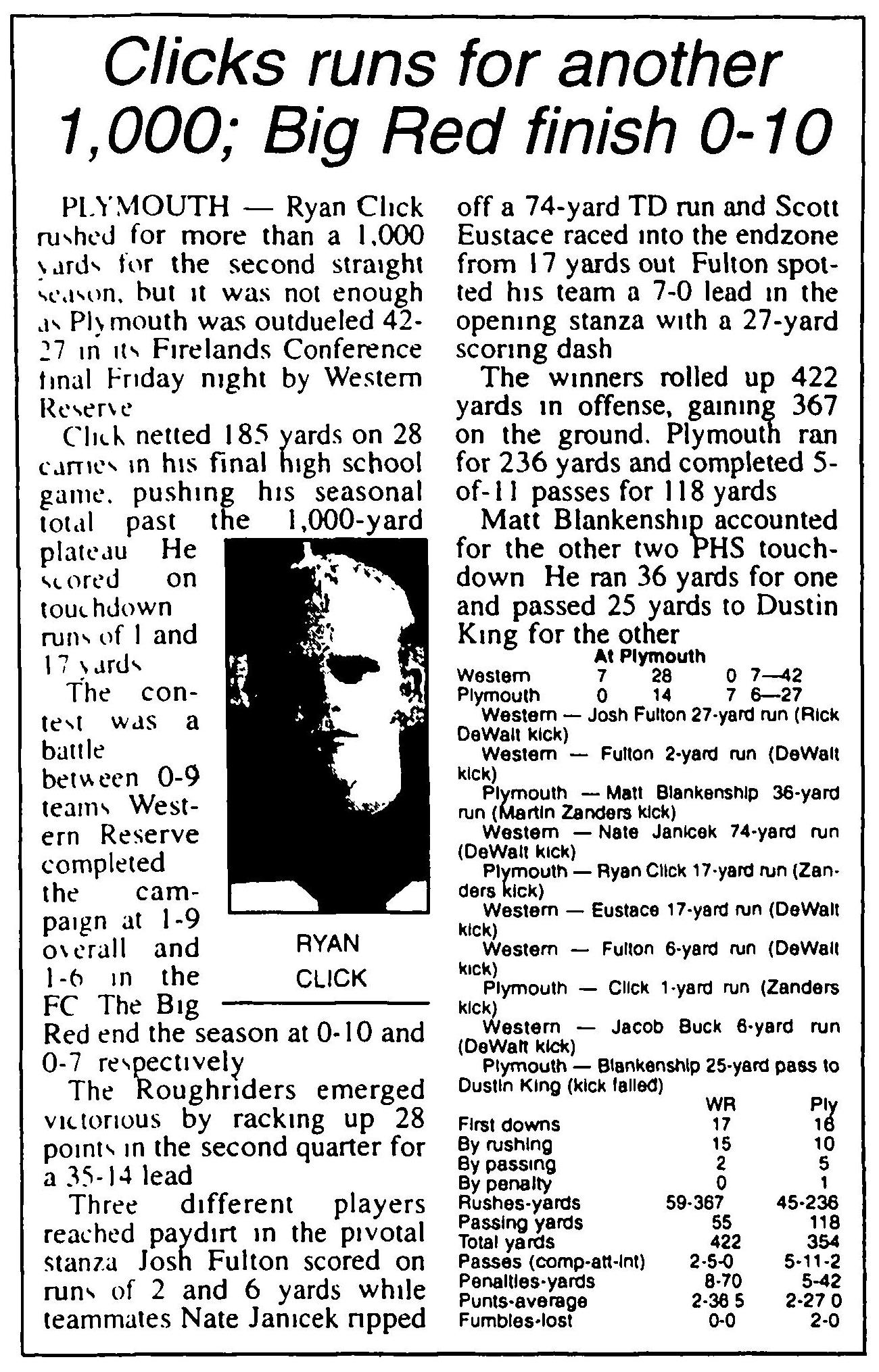 First Downs - Plymouth 13 - Western Reserve 12
