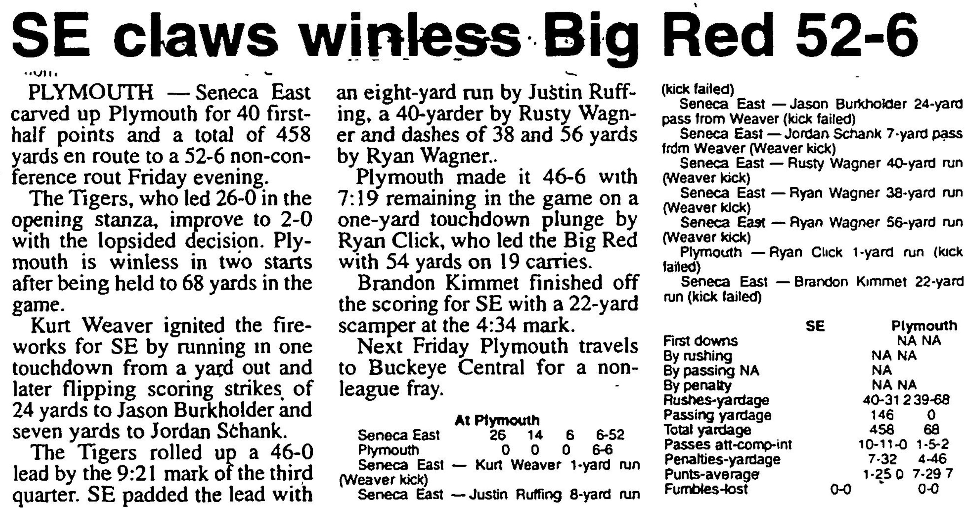 Game 2 - 9/3/1999 - Seneca East vs. Plymouth