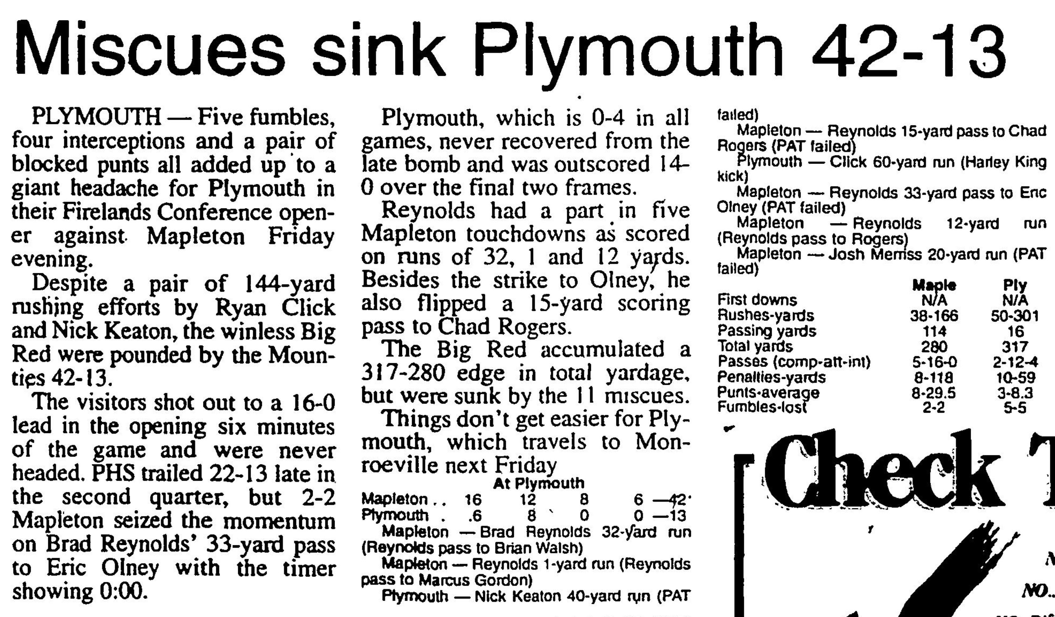 First Downs - Plymouth 10 - Mapleton 7