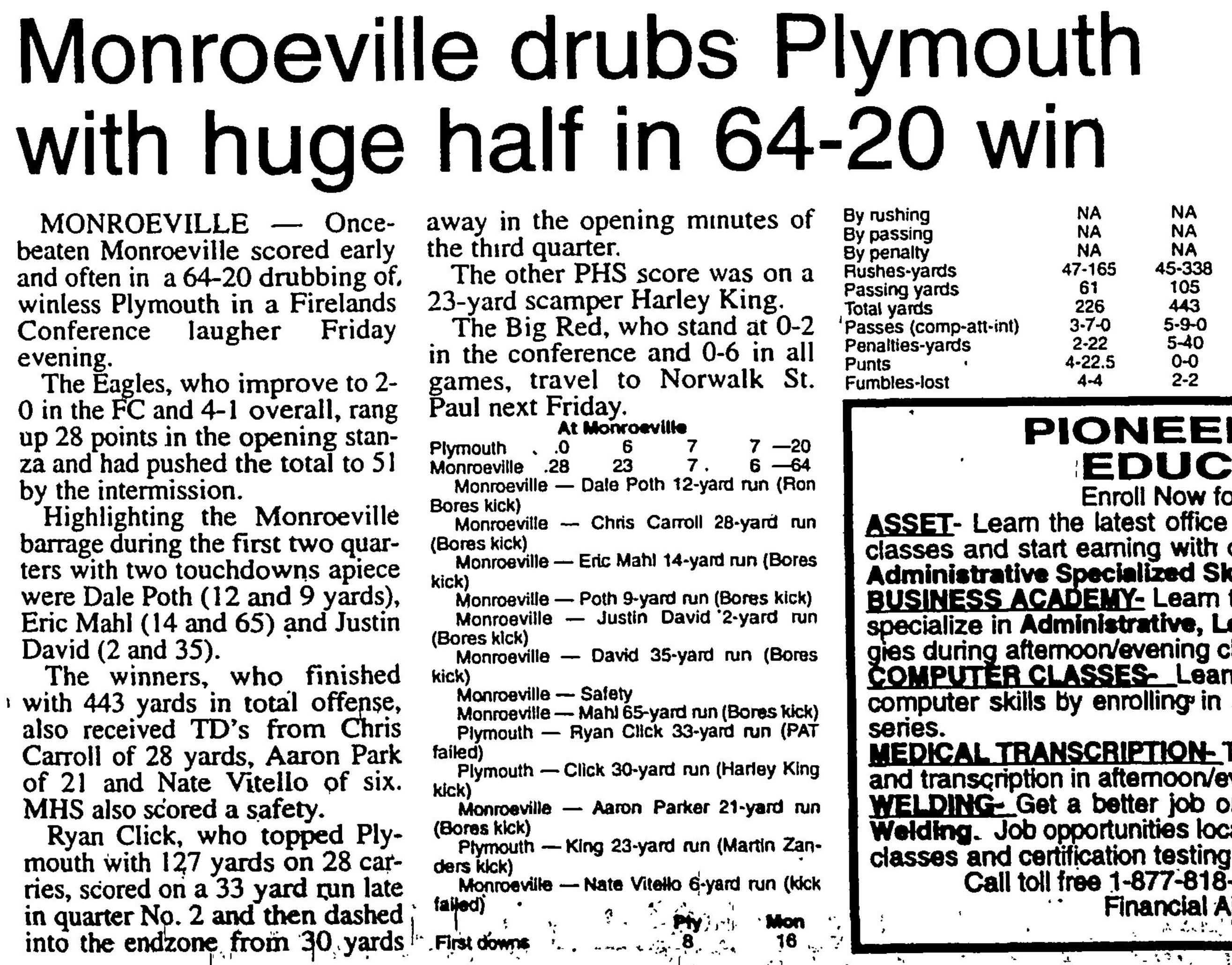 First Downs - Plymouth 8 - Monroeville 16