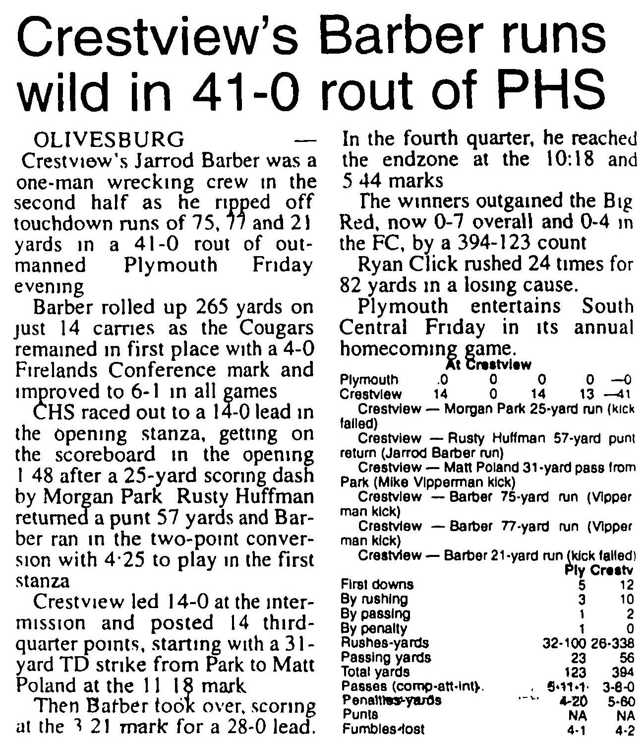 Rushing - Plymouth 100 - Crestview 338