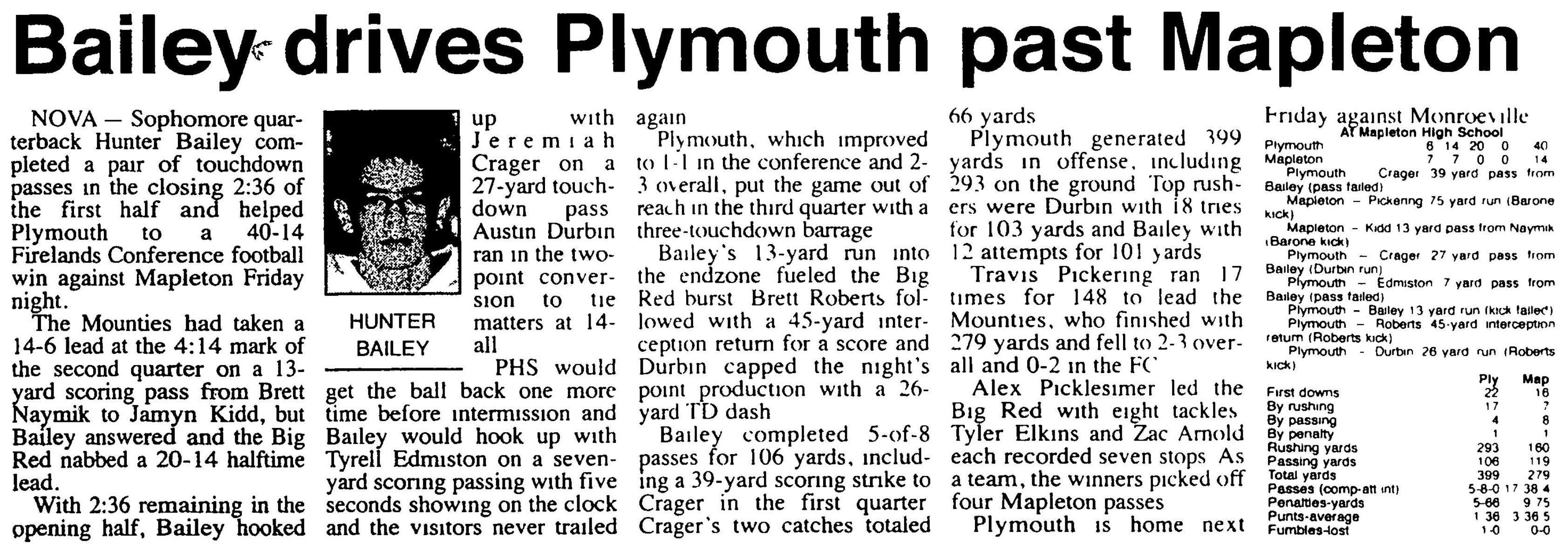 Q4 - Plymouth - Hunter Bailey 2-Yard Run (Bret Roberts Kick)