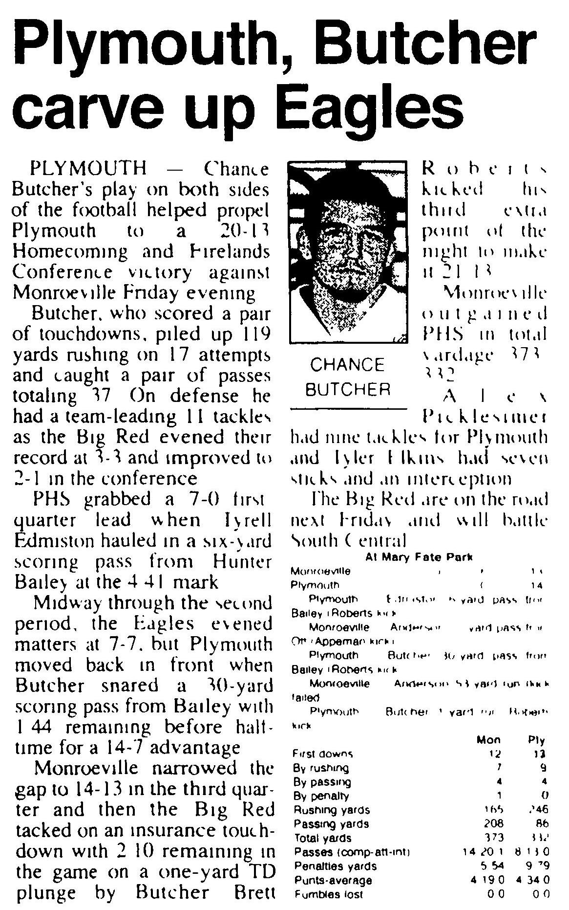 Chance Butcher 7 Receptions 85 Yards 12.1 Avg. 2 TD