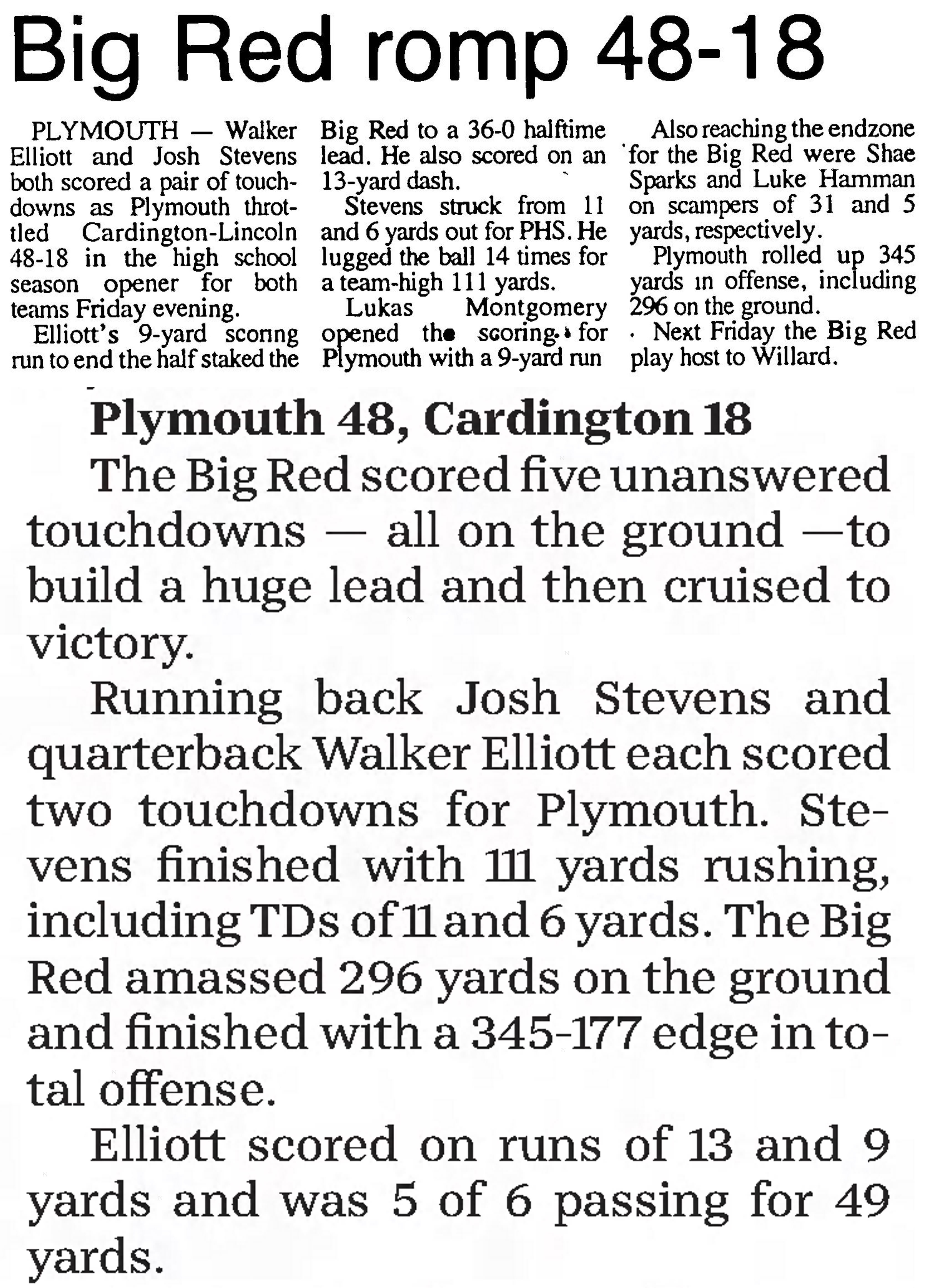 Game 1 - 8/30/2019 - Cardington vs. Plymouth