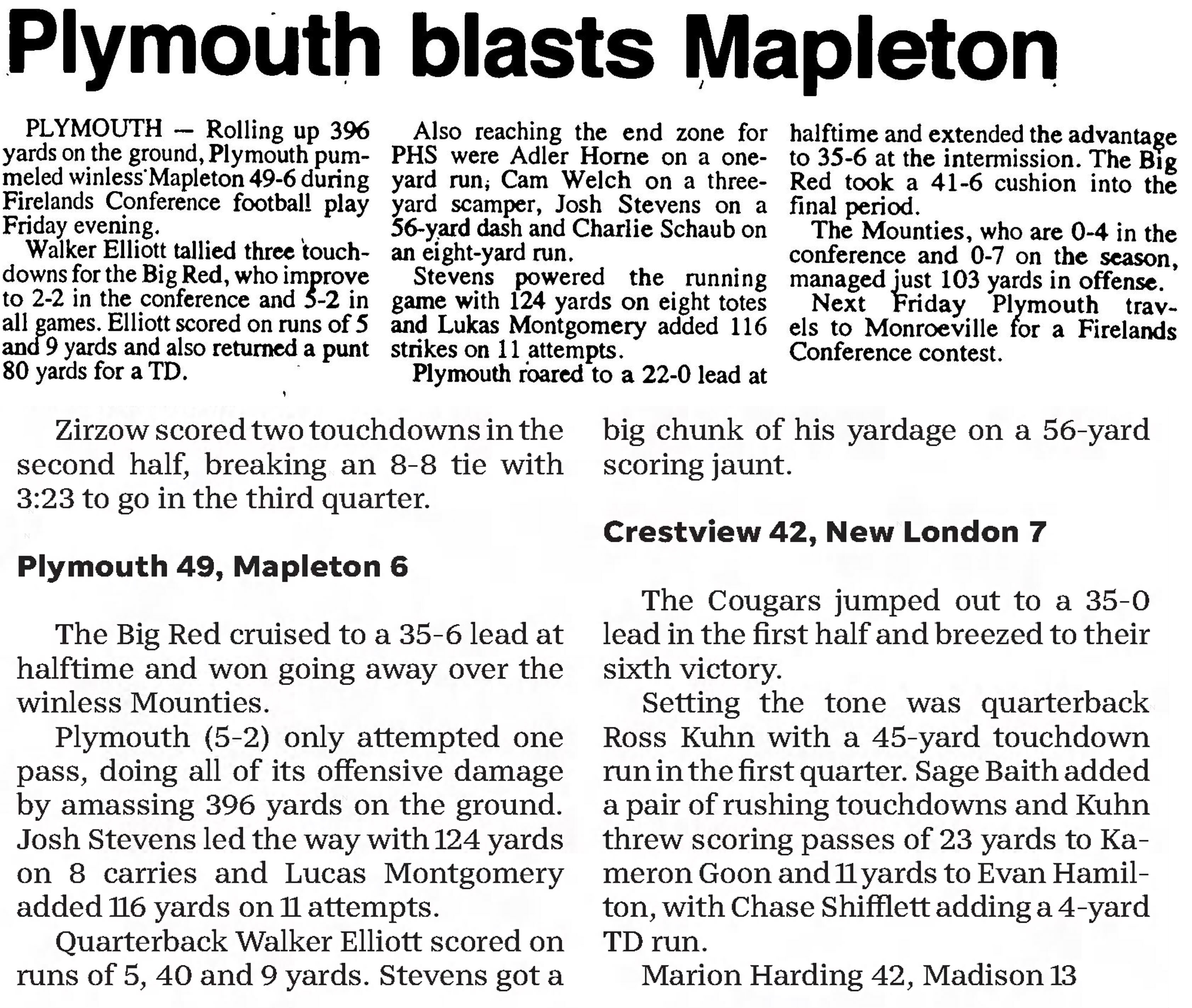 Q1 - Plymouth - Josh Stevens 10-Yard Run (Lukas Montgomery Run)