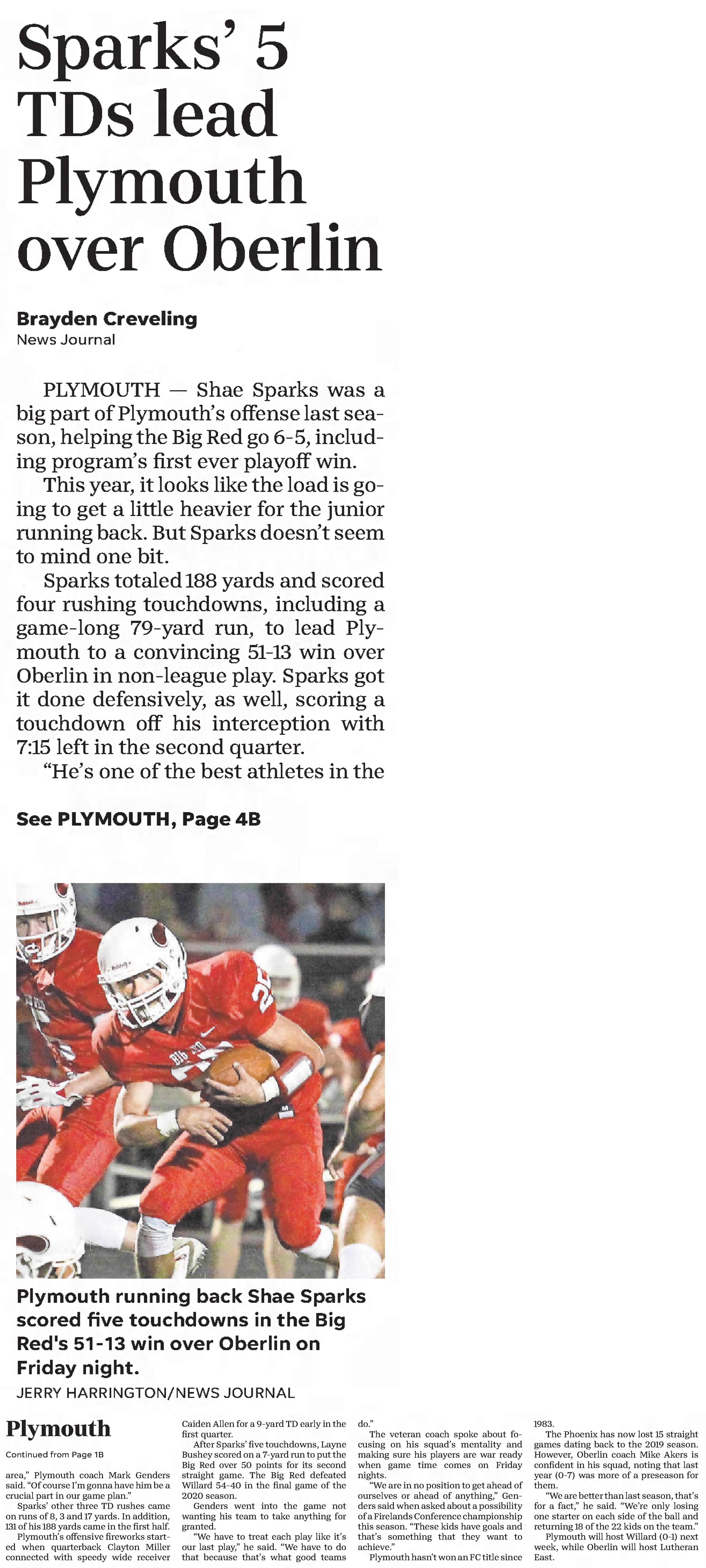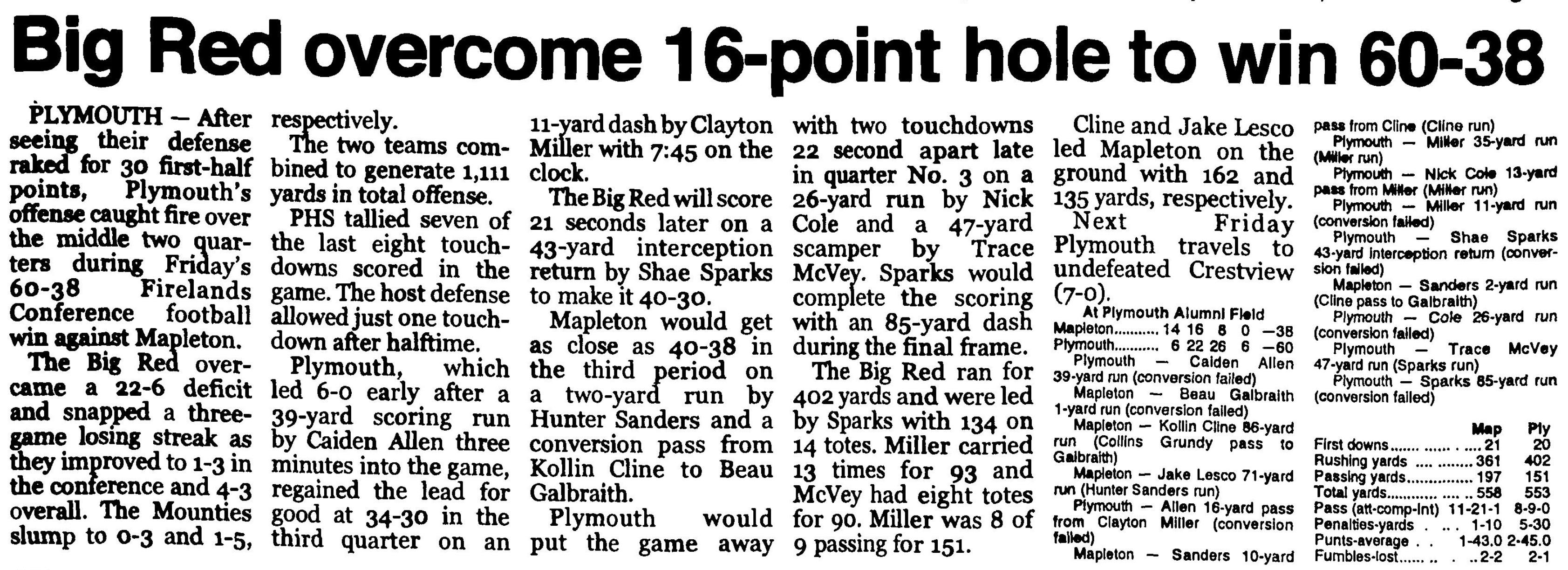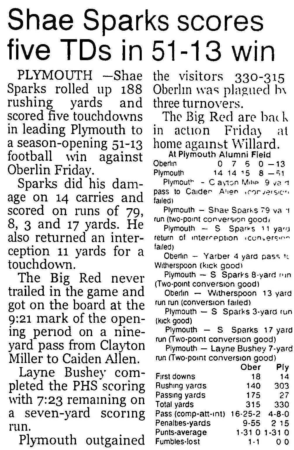 Q3 - Plymouth - Shae Sparks 3-Yard Run (Caiden Allen Kick)