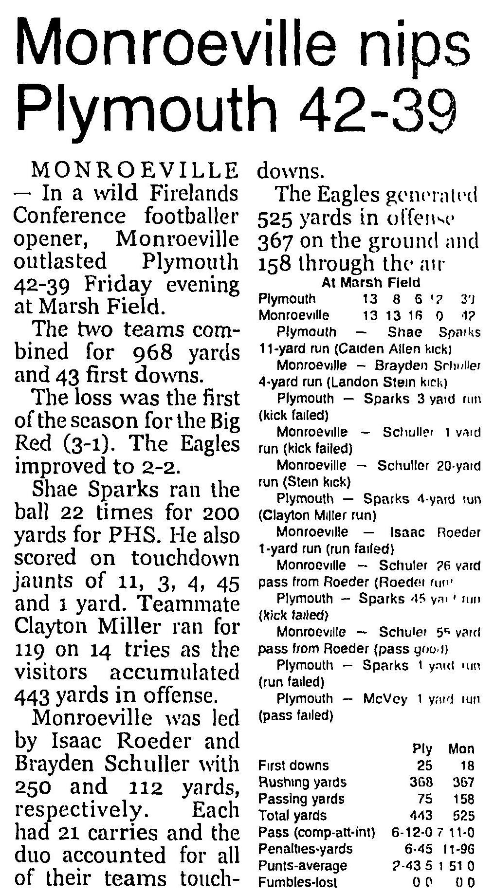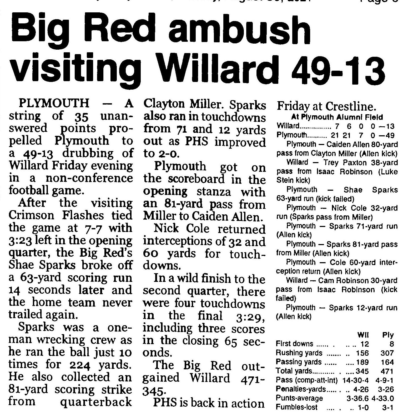 Q2 - Plymouth - Shae Sparks 8-Yard Run (Clayton Miller Pass to Caiden Allen)