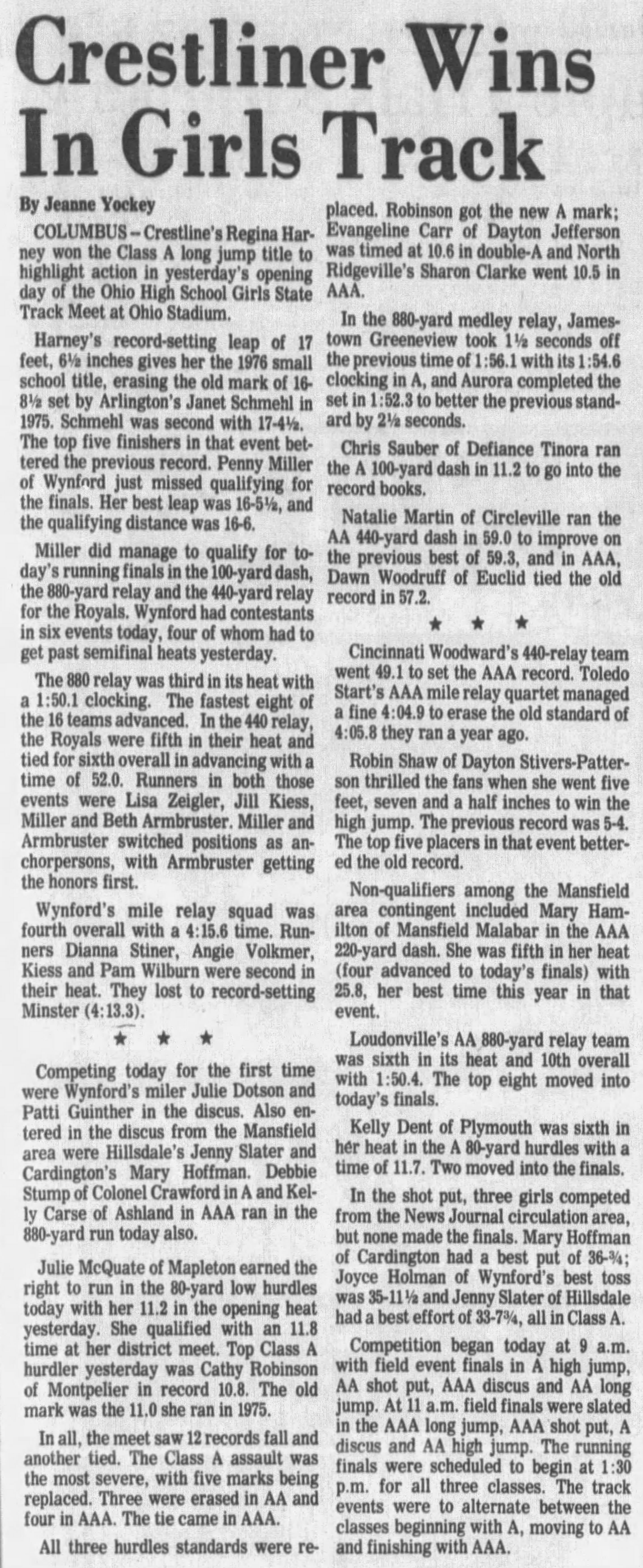 5/29/1976 District @ ONU (Girls)/Findlay (Boys) Girls Preview