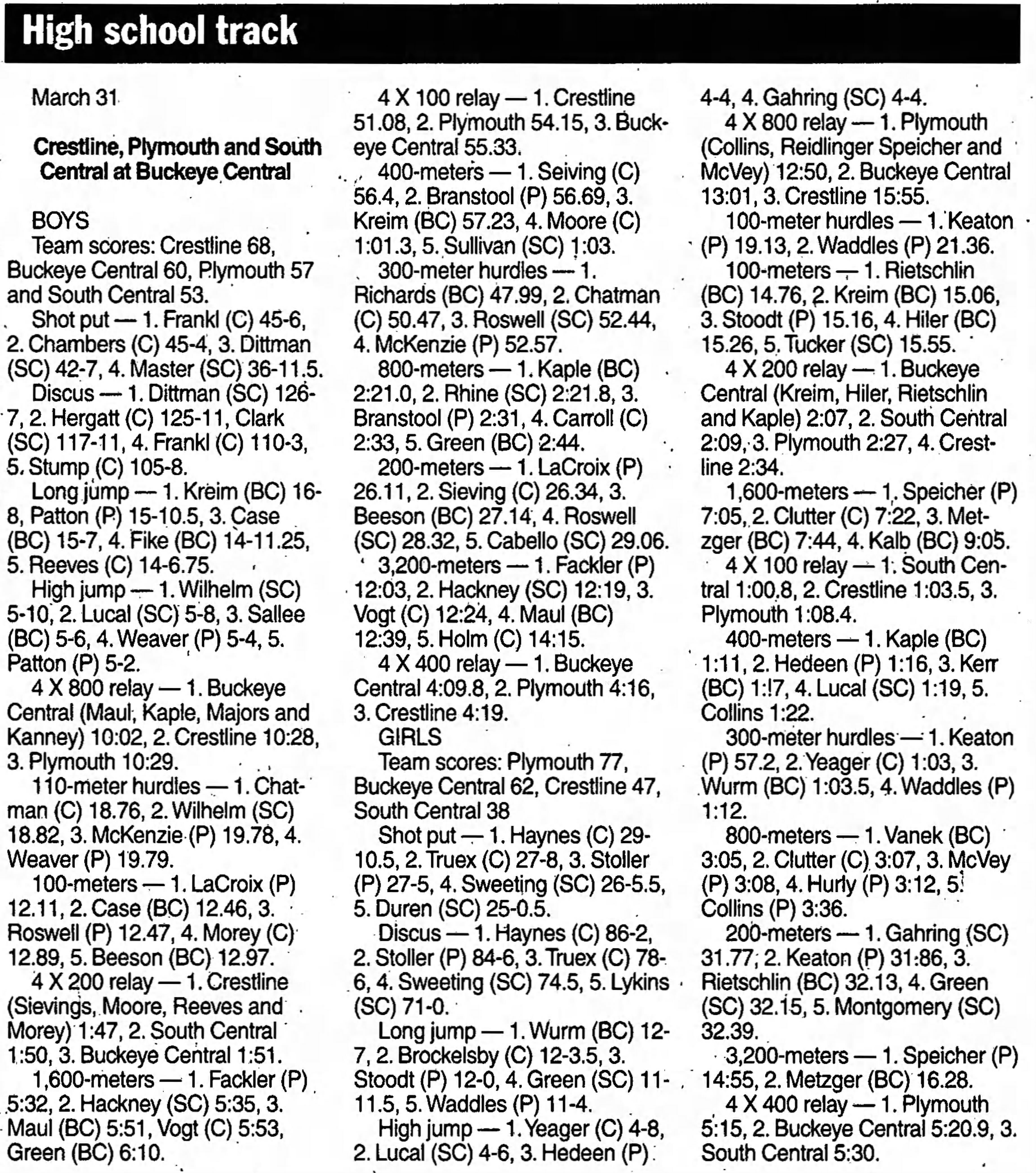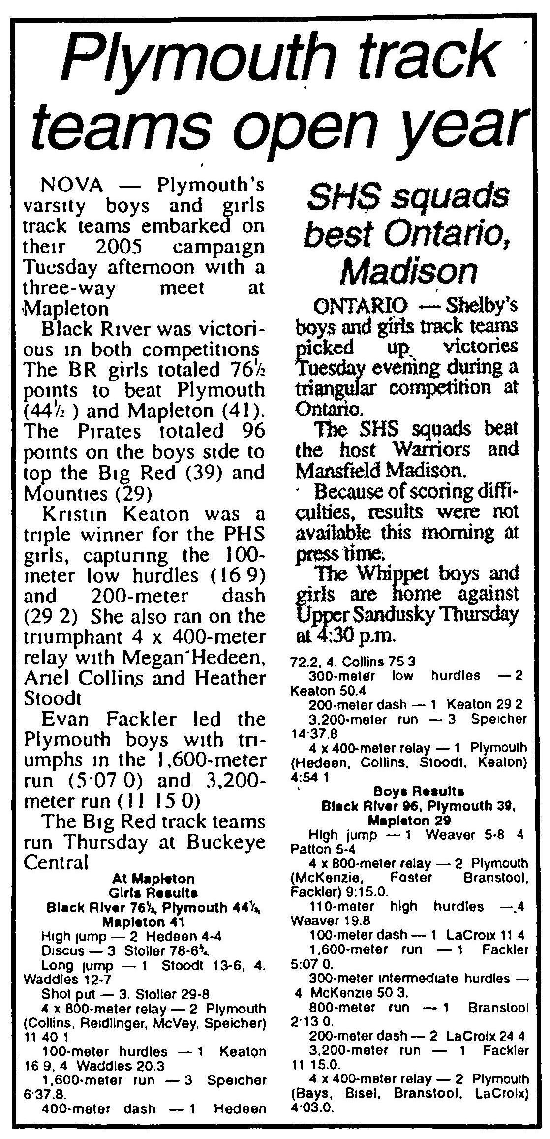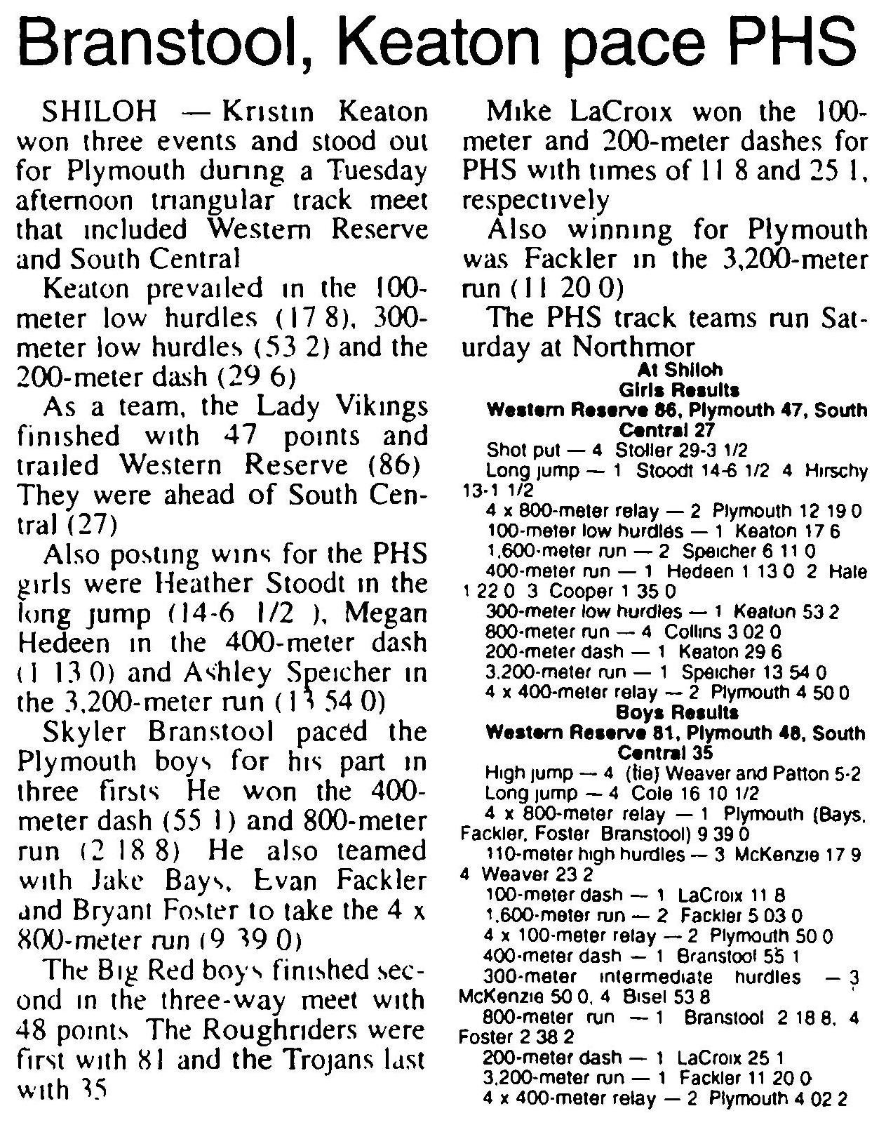 4/19/2005 Tri vs. South Central and Western Reserve Article