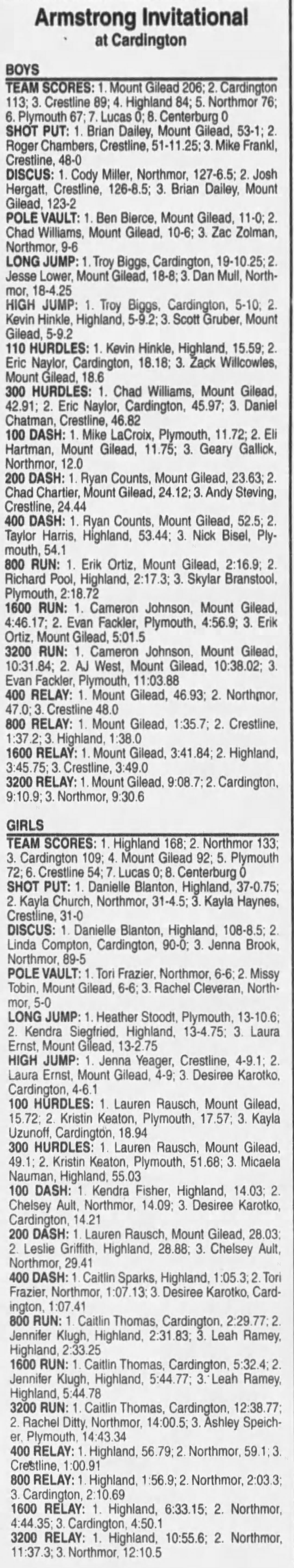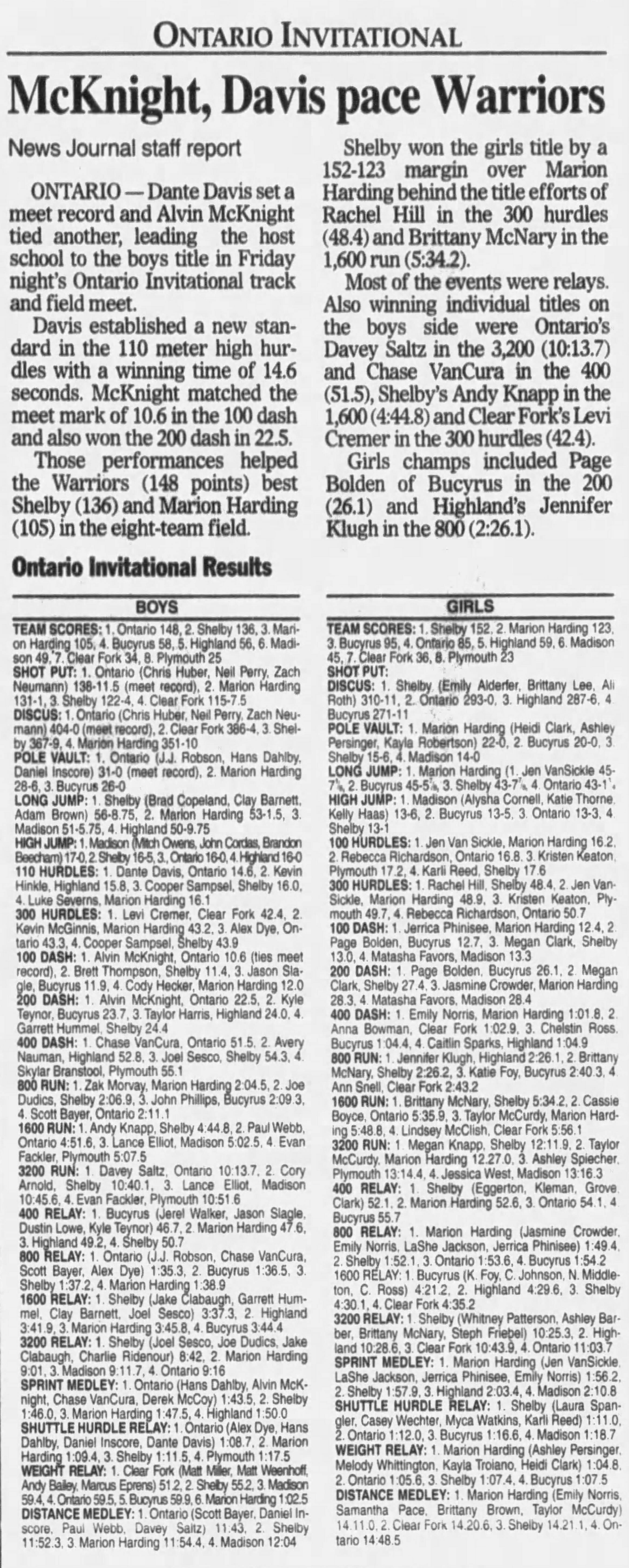 5/19 & 5/21/2005 District Meet @ Bucyrus Results